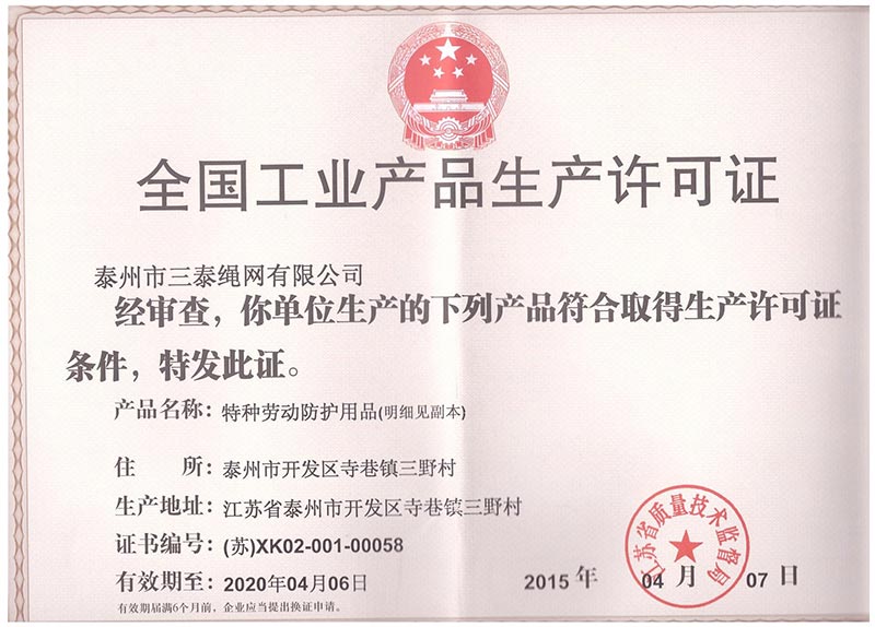 泰州市三泰健康科技有限公司(原 泰州市三泰繩網有限公司),本公司成立于1988年12月22日,至今近30年的生產歷程。多年來的生產經驗,加之我們不斷的創新,已經建設成為集研制、開發、生產、銷售為一體的龍頭企業。公司生產線由捻線車間、制繩車間、織網車間、織帶車間、織(絞)繩車間、安全網組裝車間、安全帶組裝車間、檢驗室等組成。企業現有職工155人,企業管理人員6名,市場研發人員8名,專業質檢人員2名,......